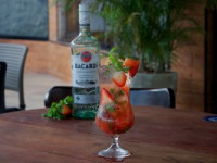 Originado em Cuba, o Mojito é conhecido por seu uma bebida de verão,leva rum bacardi, hortelã, água com gás, acúçar e morangos.