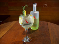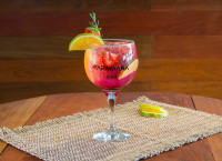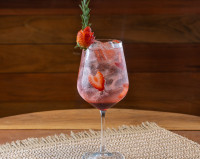 Feito com Gin Paramana, Monin Grenadine, finaliza com água tônica, laranja meia Lua e morango em rodelas. Garanto que você vai amar!!!