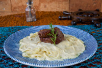 200g de filé ao medalhão grelhado na chapa. Acompanha Fettuccine ao nosso molho de 04 queijos.
