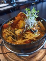 Pra quem ama Frutos do Mar. Lula, Polvo, Camarão e mexilhão flambado no rum, molho bisque e massa linguine. Servido na panelinha de ferro.