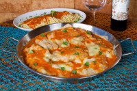 Bacalhau desfiado com Molho a base de Catupiry e queijo mussarela Gratinado.